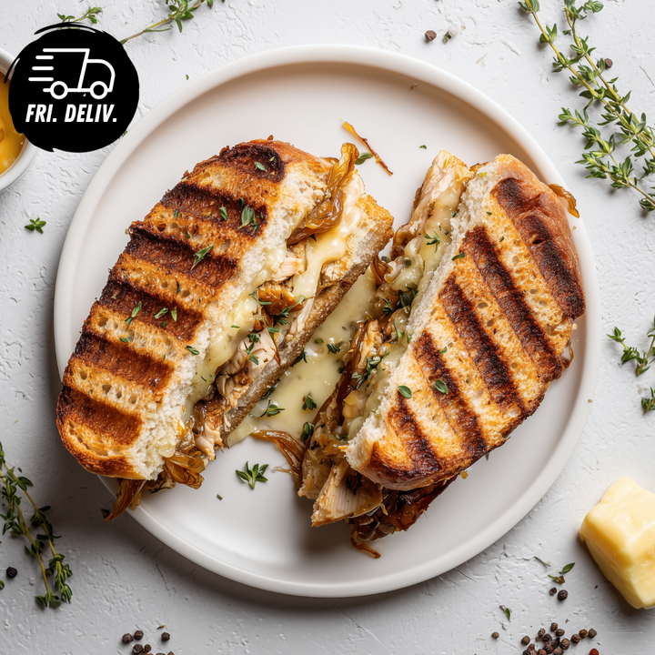 Every mouthful brings together indulgent comfort and refined flavour, making this French Onion Chicken Melt a panini designed to warm the senses and leave you craving the next bite.