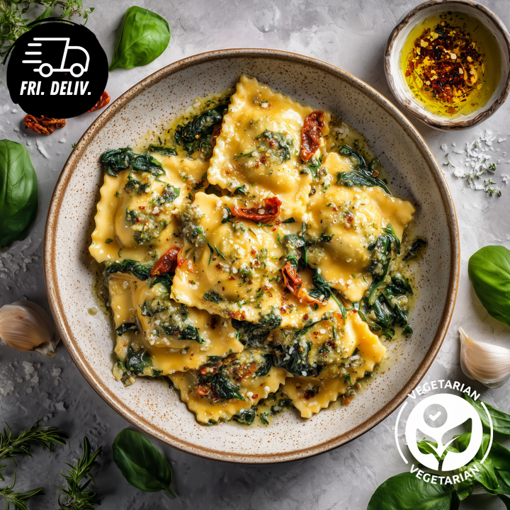 Discover a dish that celebrates brightness, warmth, and the irresistible charm of Mediterranean flavours. Our Creamy Sun-Dried Tomato & Basil Pesto Ravioli with Spinach is a vibrant, indulgent twist on Italian comfort food, crafted for those who appreciate richness balanced with freshness in every forkful.